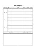 9,000원/월일일 업무일정표 입니다. 오전, 오후, 잔업, 부서명, 성명, 업무내용, 특이사항, 처리결과 등으로 구성되었습니다. 업무유의사항 및 익일 수행예정업무 기록에 용이합니다.