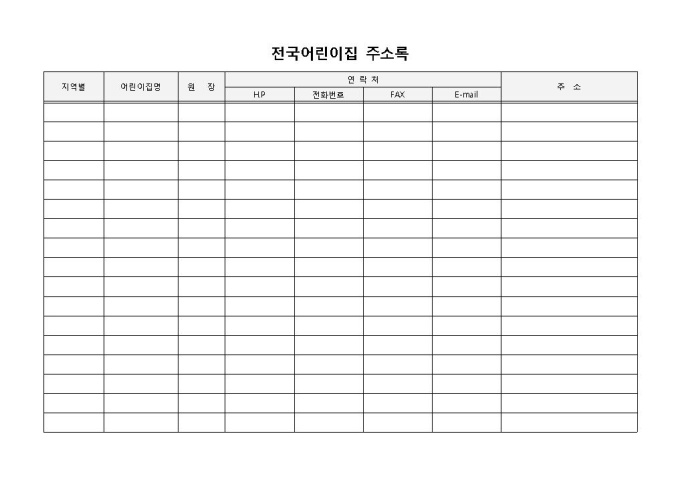 9,000원/월전국어린이집주소록 입니다. 지역별, 어린이집명, 원장, 연락처 등으로 구성되었습니다. 지역에 따른 세부적인 구성을 통해 보다 긴밀한 네트워크 시스템을 가능하게 합니다.