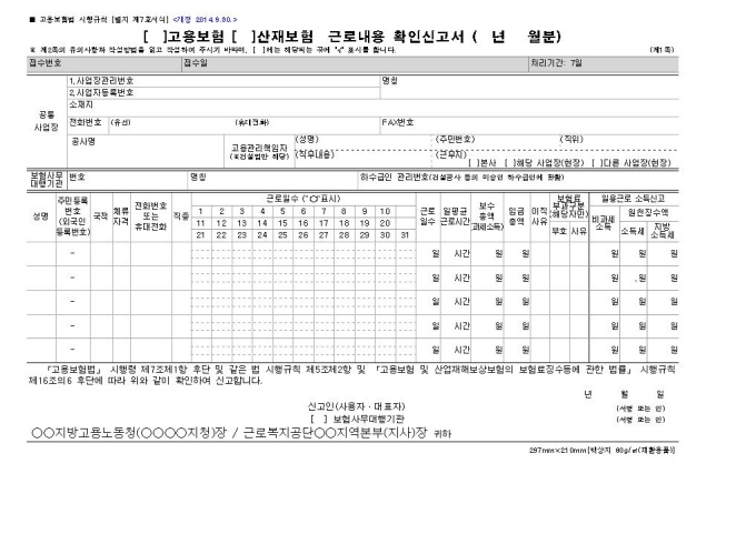 9,000원/월근로내용 확인신고서(개정2014.9.30)입니다. [출 처] : 근로복지공단