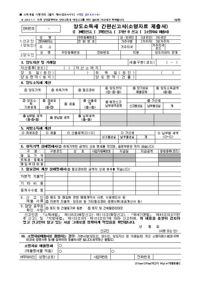 9,000원/월양도소득세 간편신고서(소명자료 제출서)(개정2014.3.14)입니다. 출 처 : 법제처