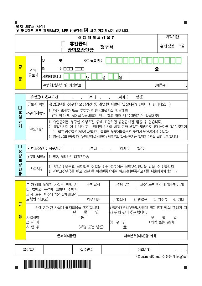 9,000원/월휴업급여 청구서입니다. ▶ 출 처 : 근로복지공단