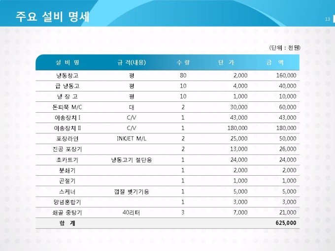 주요 설비 명세