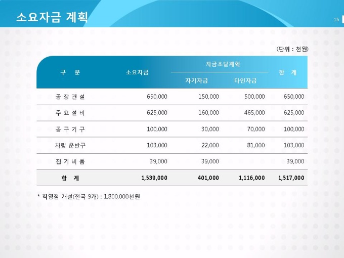 소요자금 계획