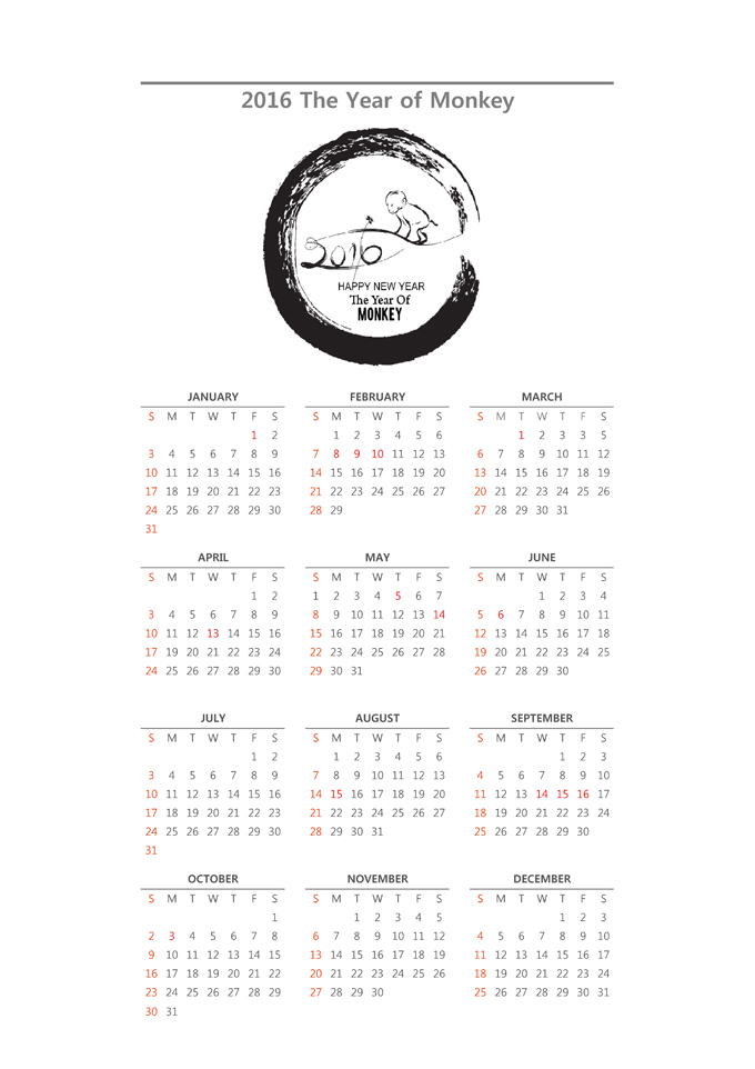 2016년 달력(연간일정,원페이지,병신년 원숭이해 디자인)입니다. 원숭이 해를 맞이하여 원숭이 이미지를 접목시켰으며, 원 페이지 캘린더로 간편하게 사용하실 수 있는 심플형 달력입니다. 일정관리, 일정관리, 스케줄관리에 효율적으로 사용할 수 있습니다.