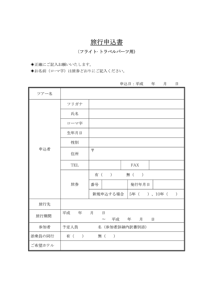 9,000원/월여행신청서(수배여행:Flight Travle Parts용)(일본어)입니다. 여행신청서(수배여행:Flight Travle Parts용)(일본어) 양식이 일본어로 작성된 문서양식입니다. 거래, 서비스 거래 분야에 활용할 수 있습니다. 여행신청서(수배여행:Flight Travle Parts용)(일본어) 양식
