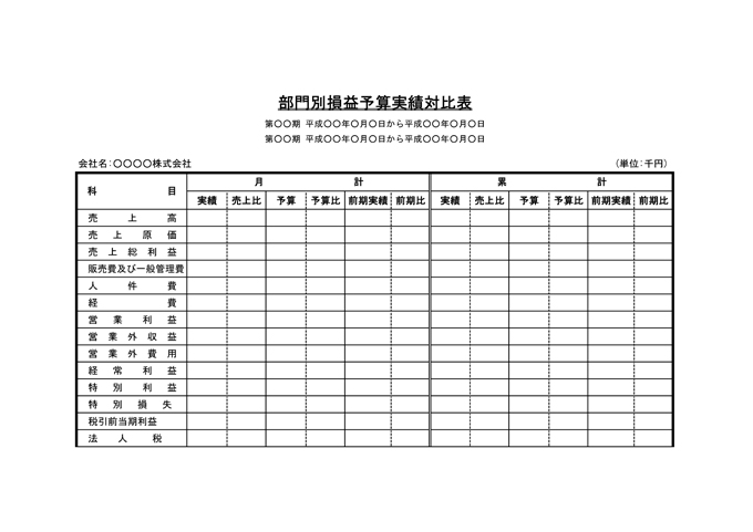 9,000원/월부문별 손익예산실적대비표(일본어)입니다. 부문별 손익예산실적대비표(일본어) 양식이 일본어로 작성된 문서양식입니다. 경리업무, 경리서식 분야에 활용할 수 있습니다. 부문별 손익예산실적대비표(일본어) 양식