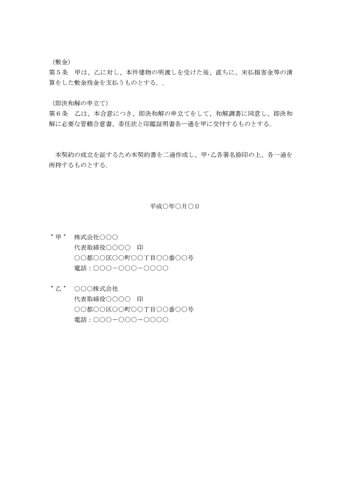 9,000원/월건물 명도 합의서(일본어)입니다. 건물 명도 합의서(일본어) 양식이 일본어로 작성된 문서양식입니다. 계약서, 계약서 분야에 활용할 수 있습니다. 건물 명도 합의서(일본어) 양식