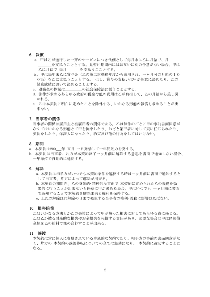 9,000원/월고용계약서1(일본어)입니다. 고용계약서1(일본어) 양식이 일본어로 작성된 문서양식입니다. 계약서, 계약서 분야에 활용할 수 있습니다. 고용계약서1(일본어) 양식