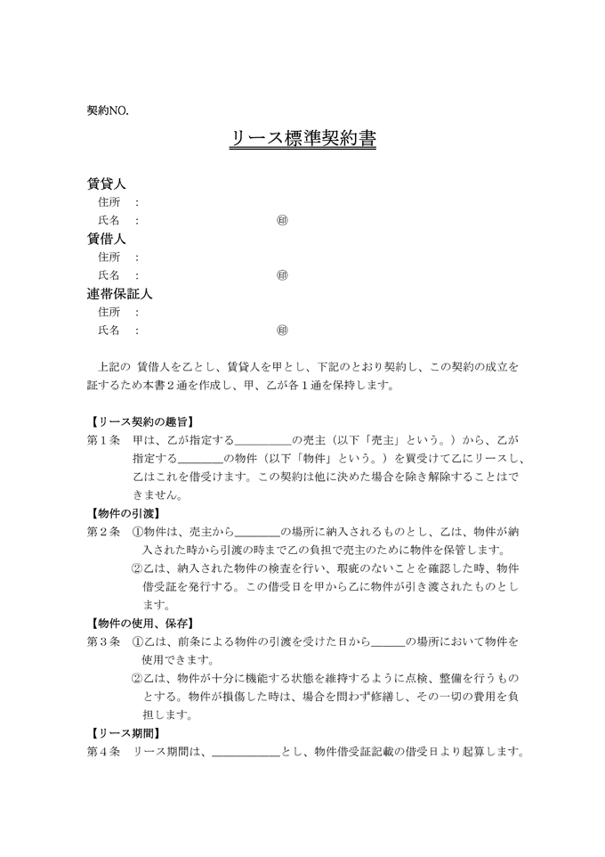 9,000원/월리스표준계약서1 (일본어)입니다. 리스표준계약서1 (일본어) 양식이 일본어로 작성된 문서양식입니다. 계약서, 계약서 분야에 활용할 수 있습니다. 리스표준계약서1 (일본어) 양식