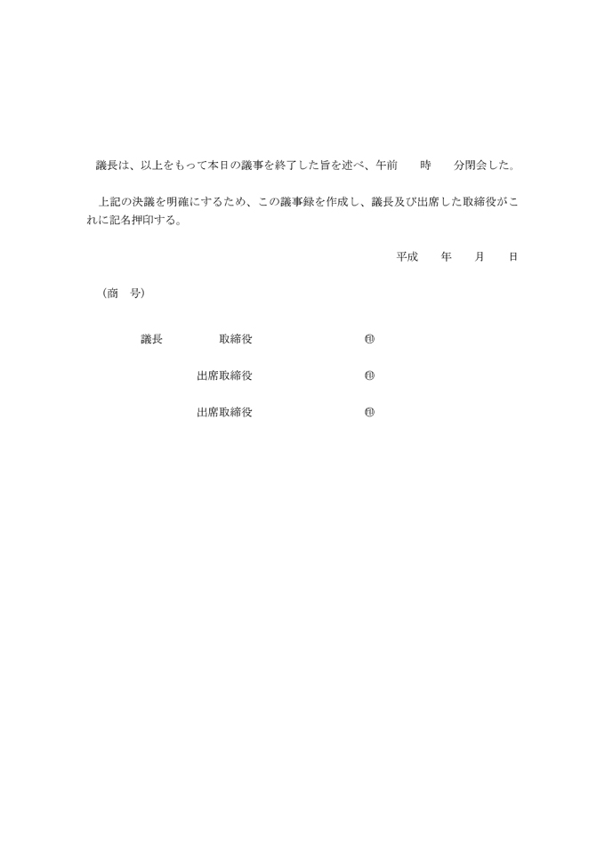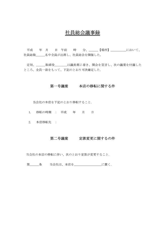 9,000원/월본점 이전에 대한 사원 총회 회의록(일본어)입니다. 본점 이전에 대한 사원 총회 회의록(일본어) 양식이 일본어로 작성된 문서양식입니다. 등기신청, 유한회사등기신청 분야에 활용할 수 있습니다. 본점 이전에 대한 사원 총회 회의록(일본어) 양식