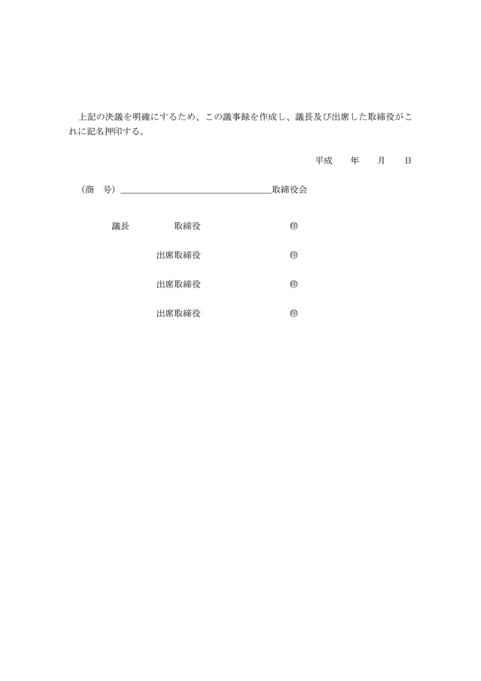 9,000원/월본점 이전에 대한 이사회 의사록(정관 변경을 필요로 하지 않는 경우)(일본어)입니다. 본점 이전에 대한 이사회 의사록(정관 변경을 필요로 하지 않는 경우)(일본어) 양식이 일본어로 작성된 문서양식입니다. 등기신청, 유한회사등기신청 분야에 활용할 수 있습니다. 본점 이전에 대한 이사회 의사록(정관 변경을 필요로 하지 않는 경우)(일본어) 양식