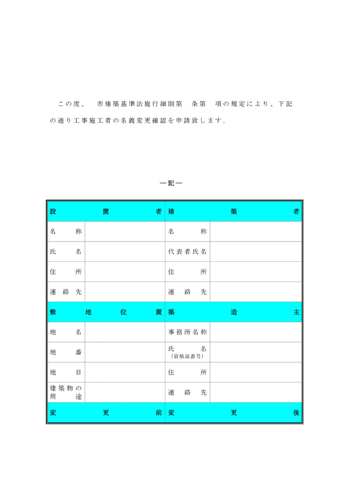 9,000원/월공사 시공자의 명의 변경의 확인서(일본어)입니다. 공사 시공자의 명의 변경의 확인서(일본어) 양식이 일본어로 작성된 문서양식입니다. 일반서식, 일반서식 분야에 활용할 수 있습니다. 공사 시공자의 명의 변경의 확인서(일본어) 양식
