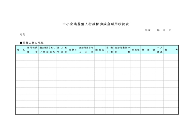 9,000원/월중소 기업 기반 인재 확보 지원금 고용 상황 표(일본어)입니다. 중소 기업 기반 인재 확보 지원금 고용 상황 표(일본어) 양식이 일본어로 작성된 문서양식입니다. 일반서식, 일반서식 분야에 활용할 수 있습니다. 중소 기업 기반 인재 확보 지원금 고용 상황 표(일본어) 양식