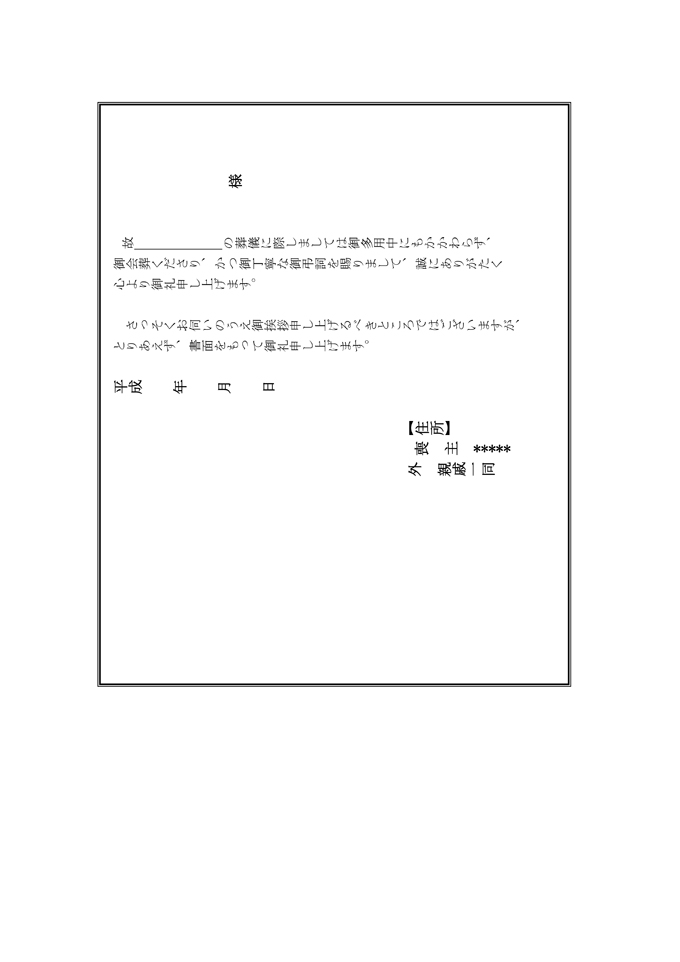9,000원/월장례식 안내(일본어)입니다. 장례식 안내(일본어) 양식이 일본어로 작성된 문서양식입니다. 회사서식, 경조사 분야에 활용할 수 있습니다. 장례식 안내(일본어) 양식