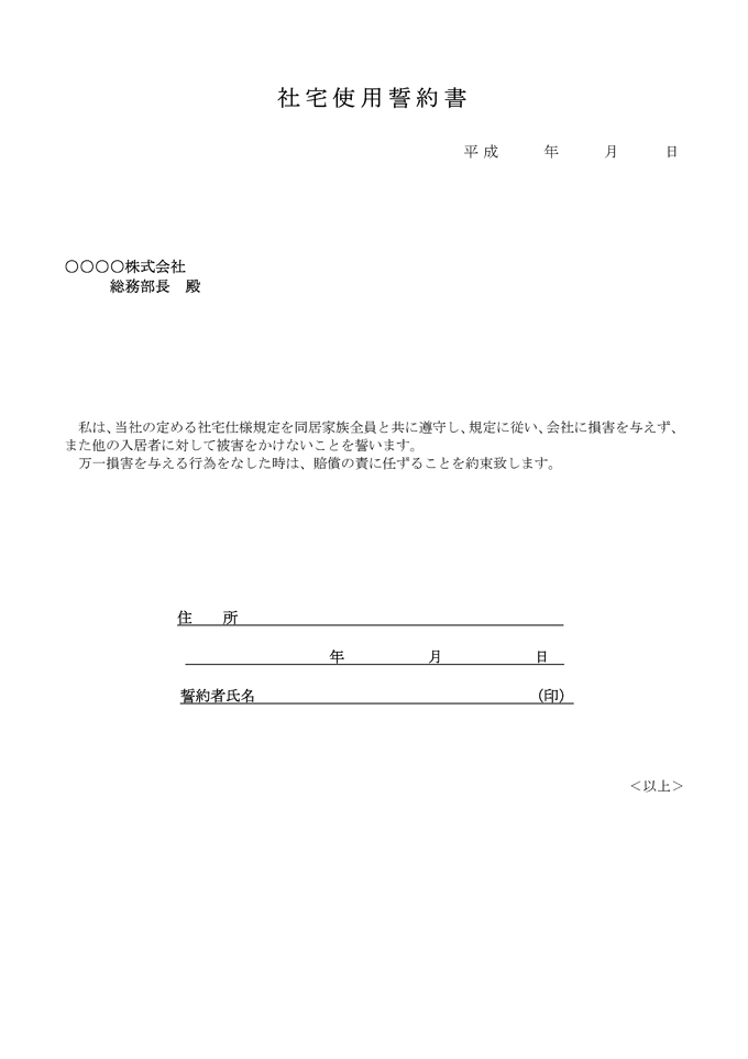 9,000원/월사택사용서약서(일본어)입니다. 사택사용서약서(일본어) 양식이 일본어로 작성된 문서양식입니다. 회사서식, 복리후생 분야에 활용할 수 있습니다. 사택사용서약서(일본어) 양식