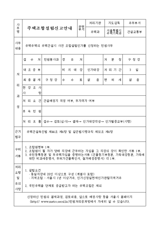 9,000원/월[별지 제42호의 5서식] 주택주택의 주택건설시 사전 조합설립인가를 신청하는 민원사무 양식입니다.