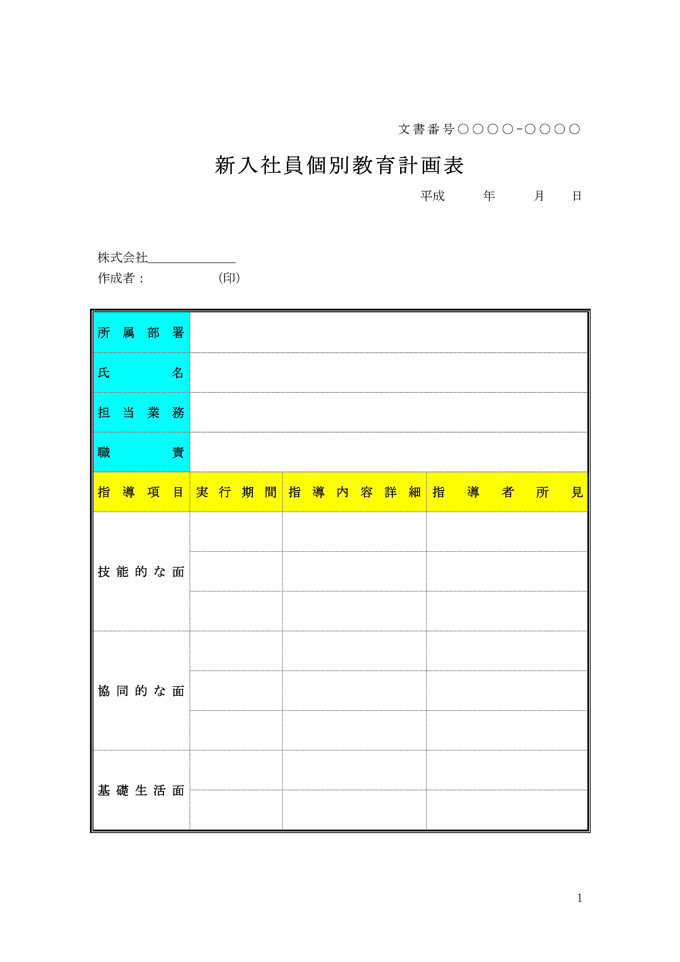 9,000원/월신입 사원 개별 교육 계획 표(일본어)입니다. 신입 사원 개별 교육 계획 표(일본어) 양식이 일본어로 작성된 문서양식입니다. 회사서식, 인사노무 분야에 활용할 수 있습니다. 신입 사원 개별 교육 계획 표(일본어) 양식