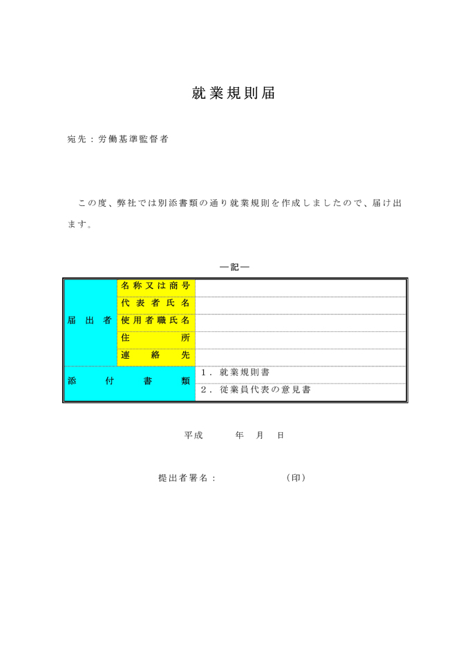 9,000원/월취업 규칙 신고(일본어)입니다. 취업 규칙 신고(일본어) 양식이 일본어로 작성된 문서양식입니다. 회사서식, 인사노무 분야에 활용할 수 있습니다. 취업 규칙 신고(일본어) 양식