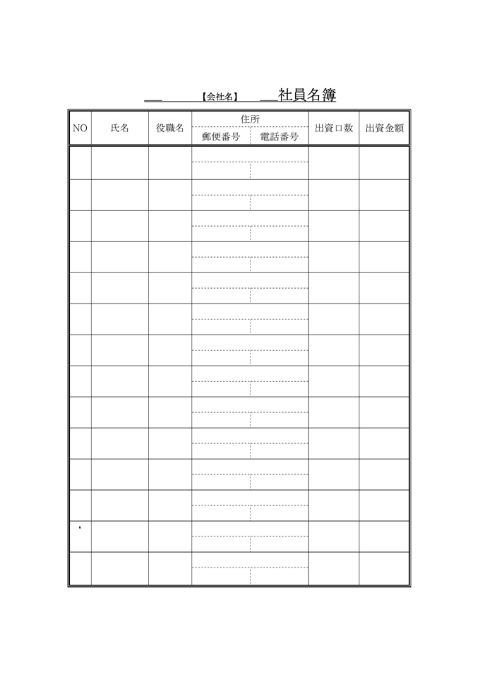 9,000원/월사원명부(일본어)입니다. 사원명부(일본어) 양식이 일본어로 작성된 문서양식입니다. 회사설립, 신청서·정관·필요서류 분야에 활용할 수 있습니다. 사원명부(일본어) 양식