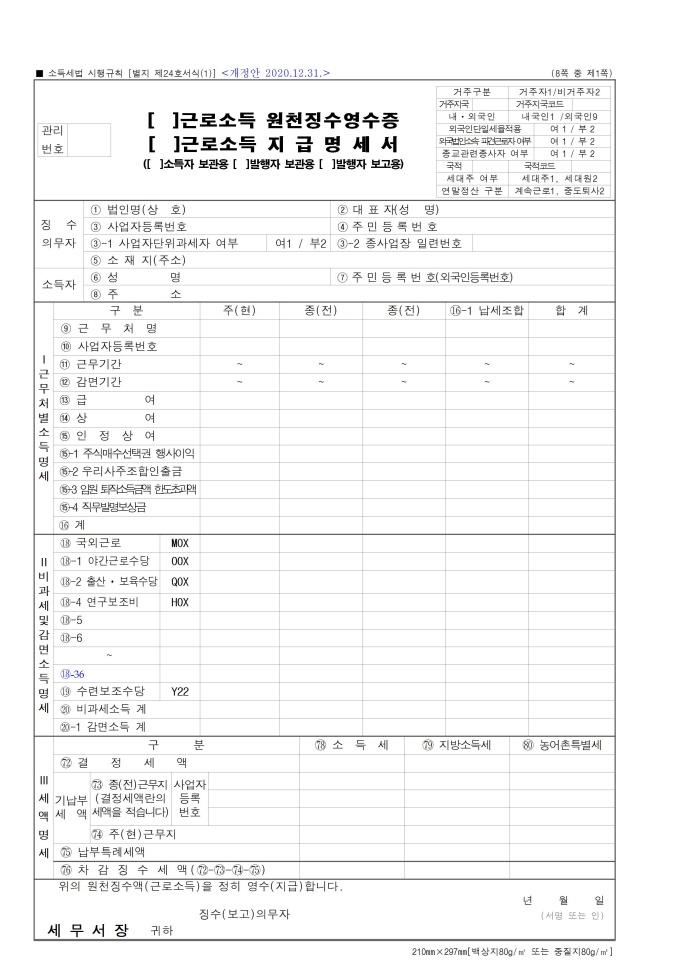 9,000원/월[연말정산] (근로소득 원천징수영수증, 근로소득 지급명세서), 퇴직소득원천징수영수증, 지급명세서, 일용근로소득 지급명세서(원천징수영수증), 일용근로소득 지급명세서(지급자제출용) 등 입니다. 소득세법 시행규칙 별지서식 ※출처 : 국세청