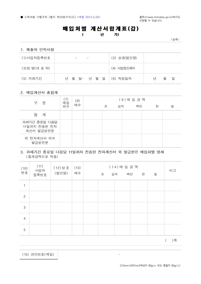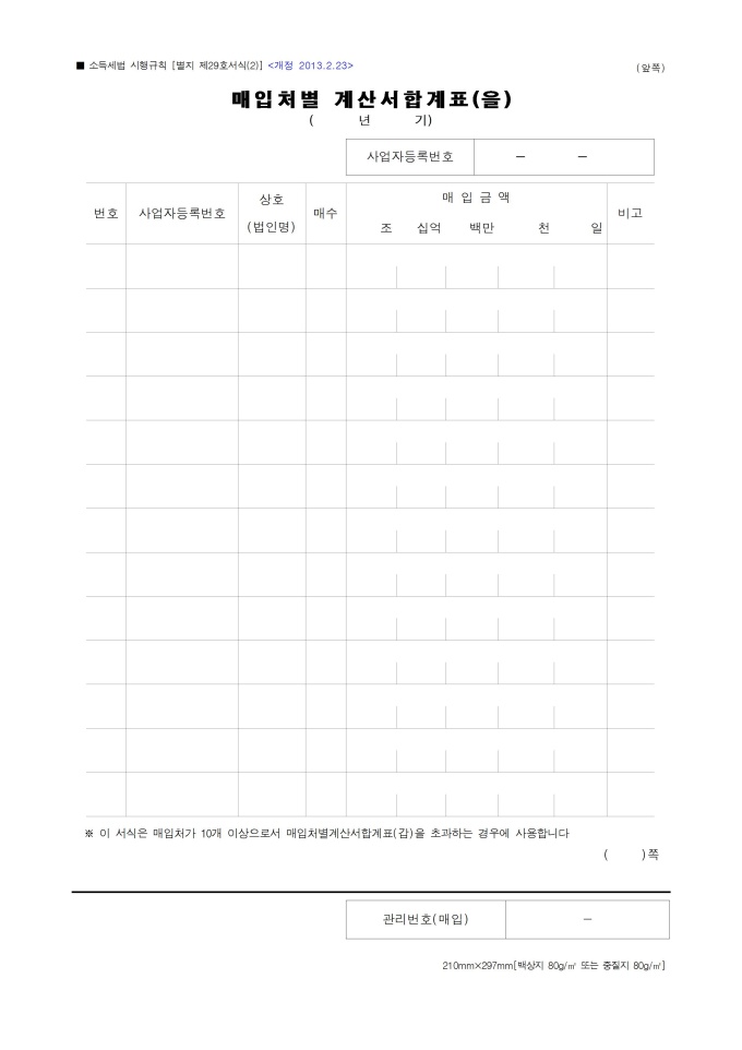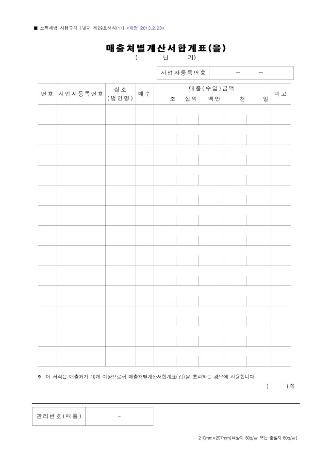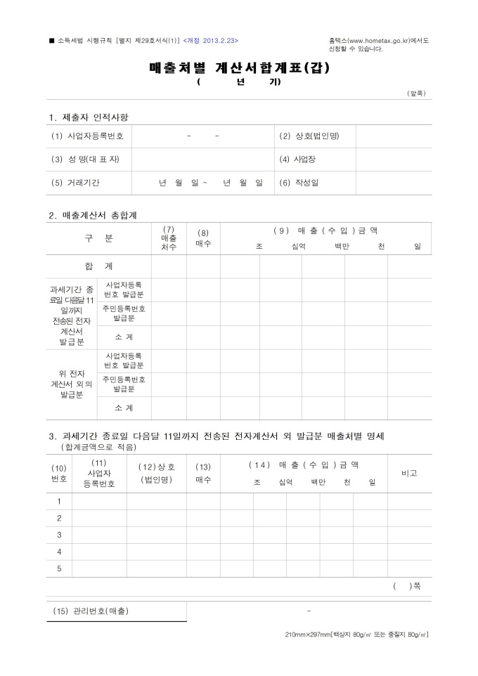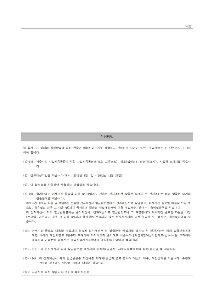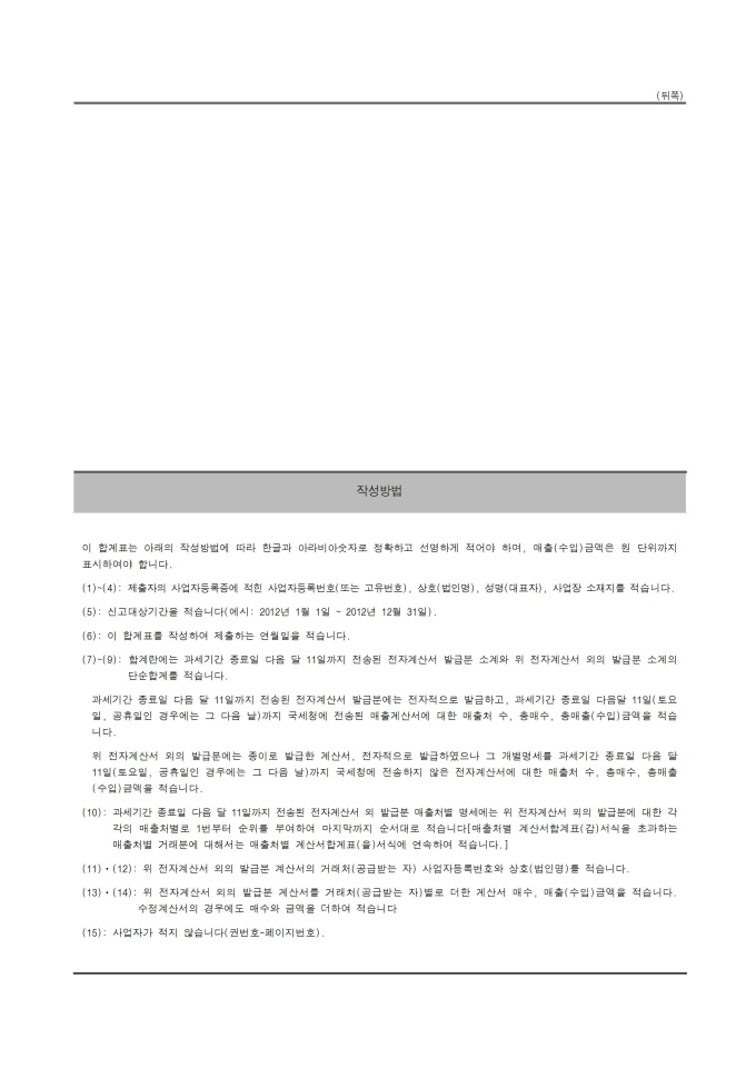 9,000원/월매출처별계산서합계표입니다. 소득세법 시행규칙 별지서식