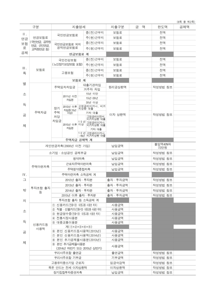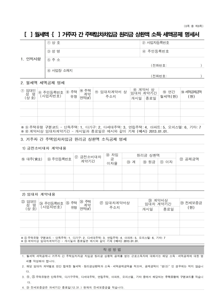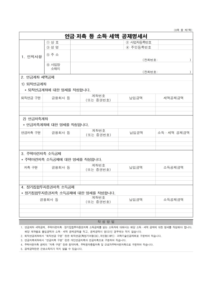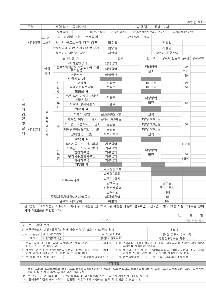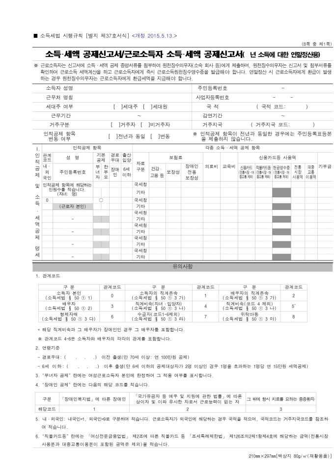 9,000원/월소득ㆍ세액 공제신고서_근로소득자 소득ㆍ세액 공제신고서입니다. 소득세법 시행규칙 별지서식