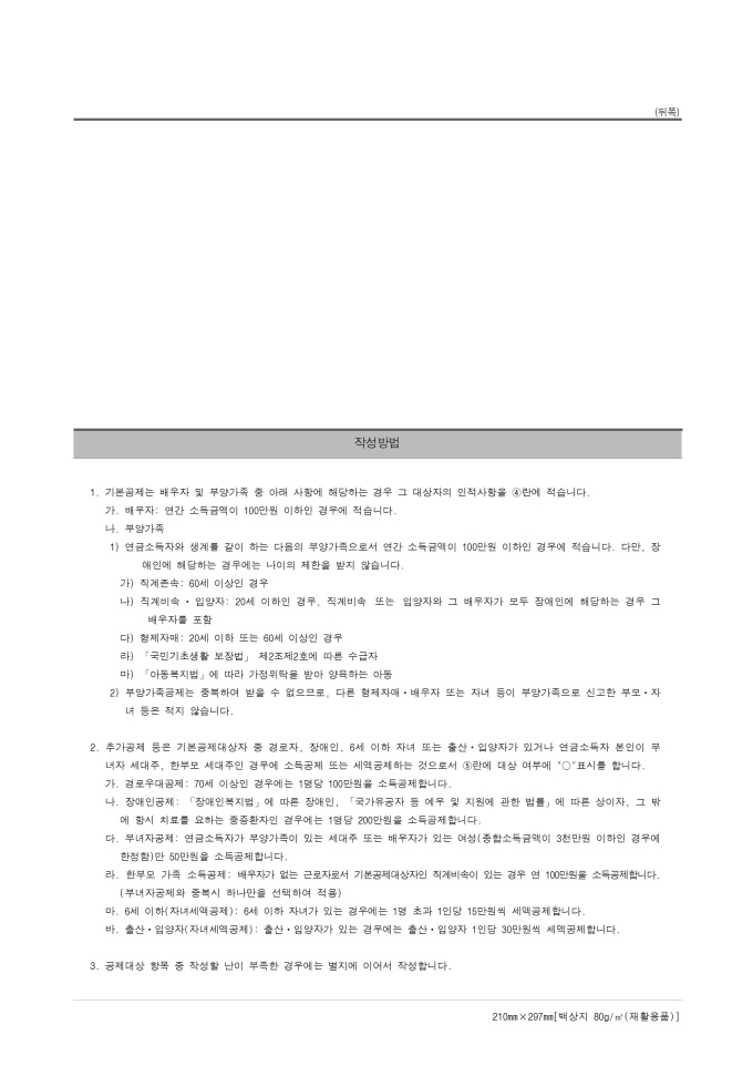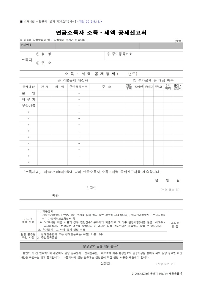 9,000원/월연금소득자 소득ㆍ세액 공제신고서입니다. 소득세법 시행규칙 별지서식