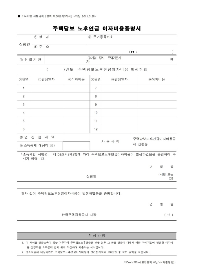 9,000원/월주택담보 노후연금 이자비용증명서입니다. 소득세법 시행규칙 별지서식