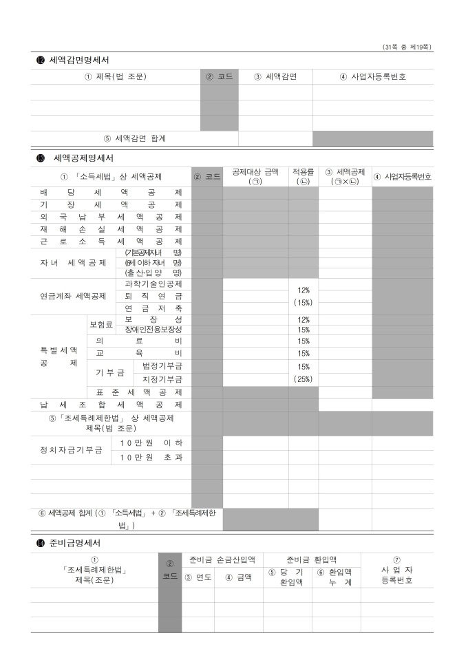 9,000원/월종합소득세ㆍ농어촌특별세ㆍ지방소득세 과세표준확정신고 및 납부계산서¸ 종합소득세ㆍ지방소득세 과세표준확정신고 및 납부계산서입니다. 소득세법 시행규칙 별지서식