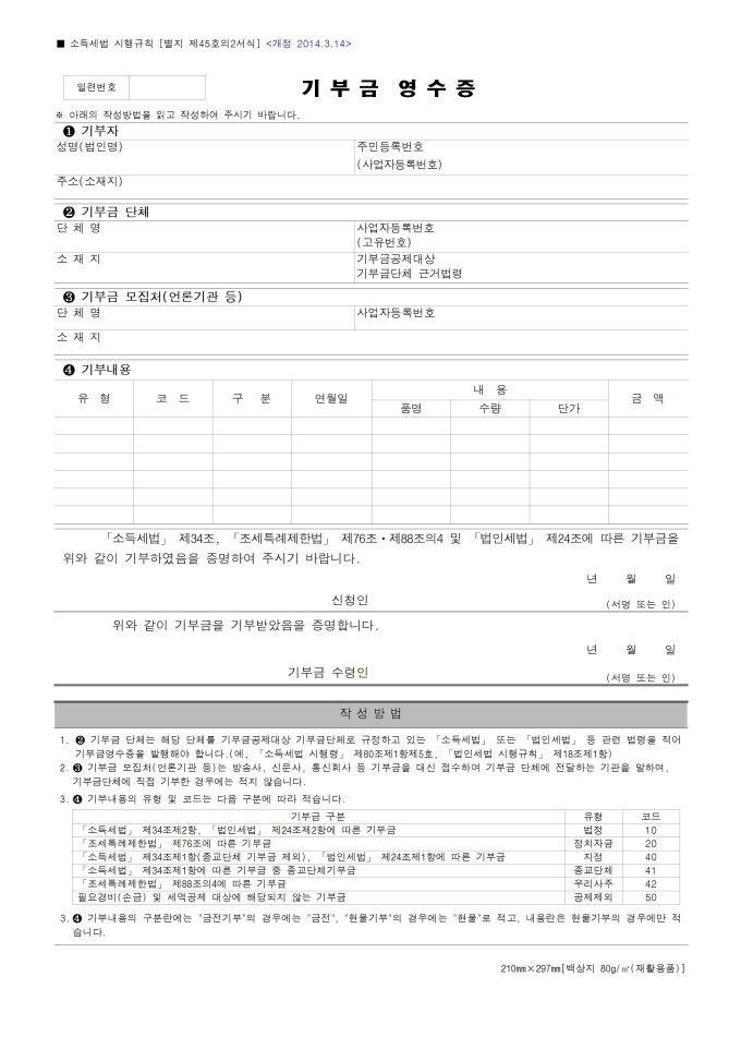 9,000원/월기부금영수증입니다. 소득세법 시행규칙 별지서식