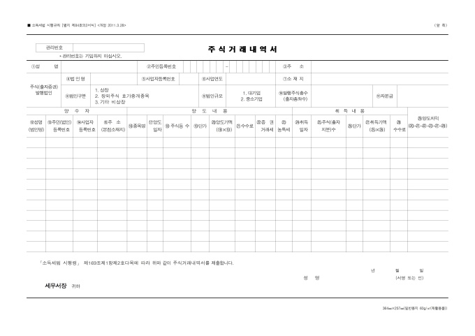 9,000원/월주식거래내역서입니다. 소득세법 시행규칙 별지서식