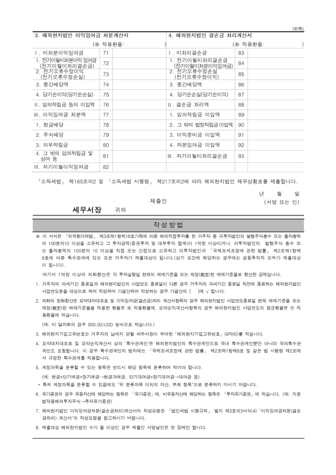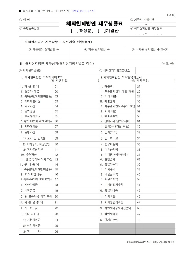 9,000원/월해외현지법인 재무상황표입니다. 소득세법 시행규칙 별지서식