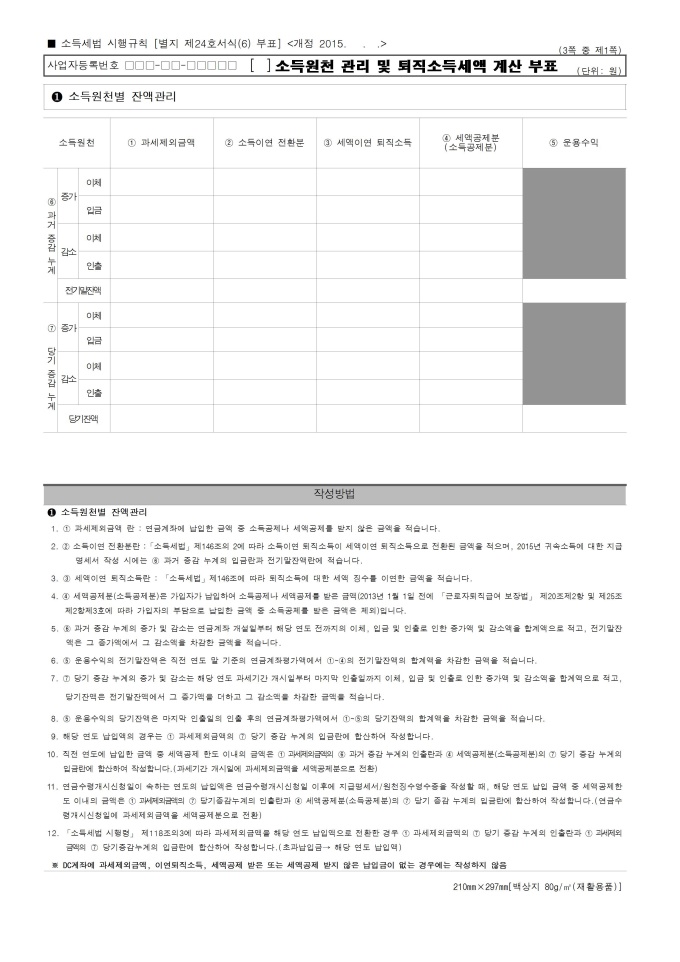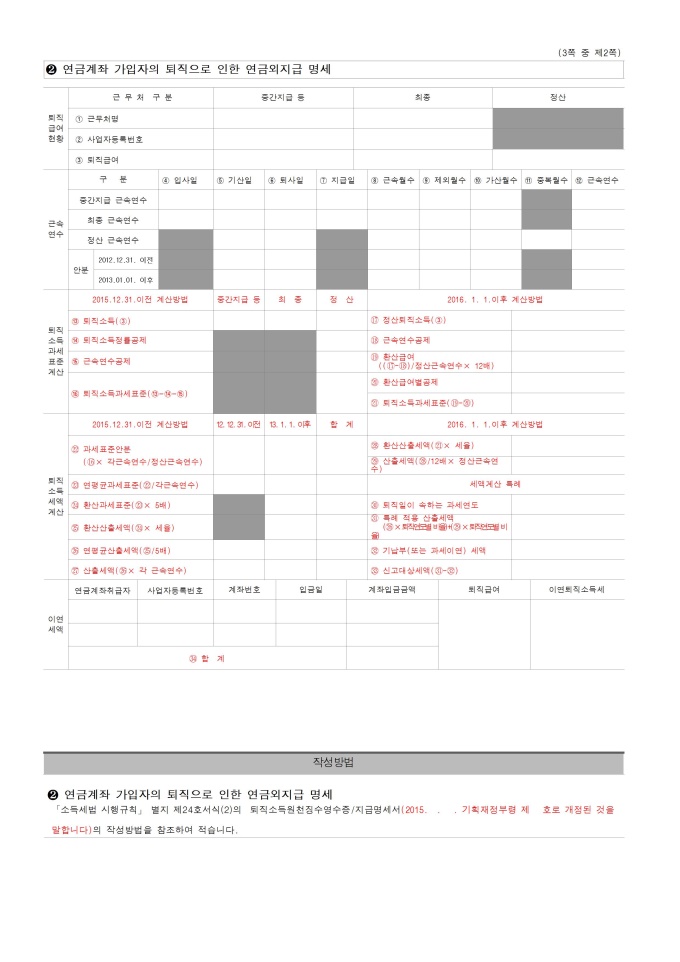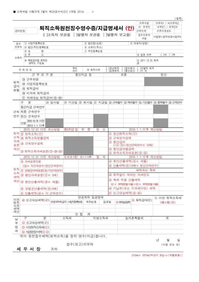 9,000원/월[2015년 연말정산] 퇴직소득원천징수영수증ㆍ지급명세서(안)입니다.