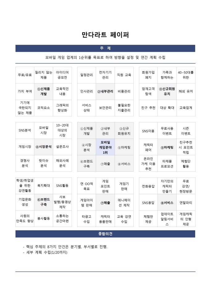 9,000원/월목표설정 만다라트입니다. 8가지 만다라트 표를 통해 목표설정하는 방법입니다.