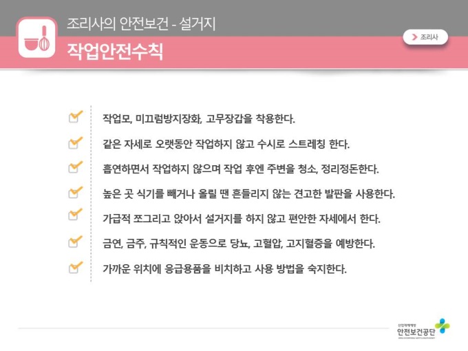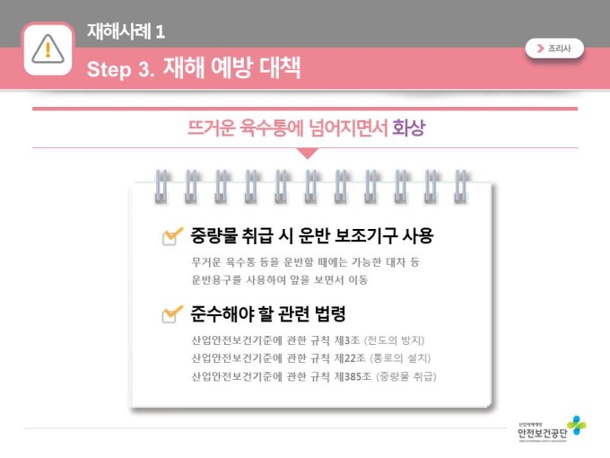 9,000원/월산업안전교육 여성근로자(조리사 재해사례) PPT자료입니다. ※ 출 처 : 안전보건공단