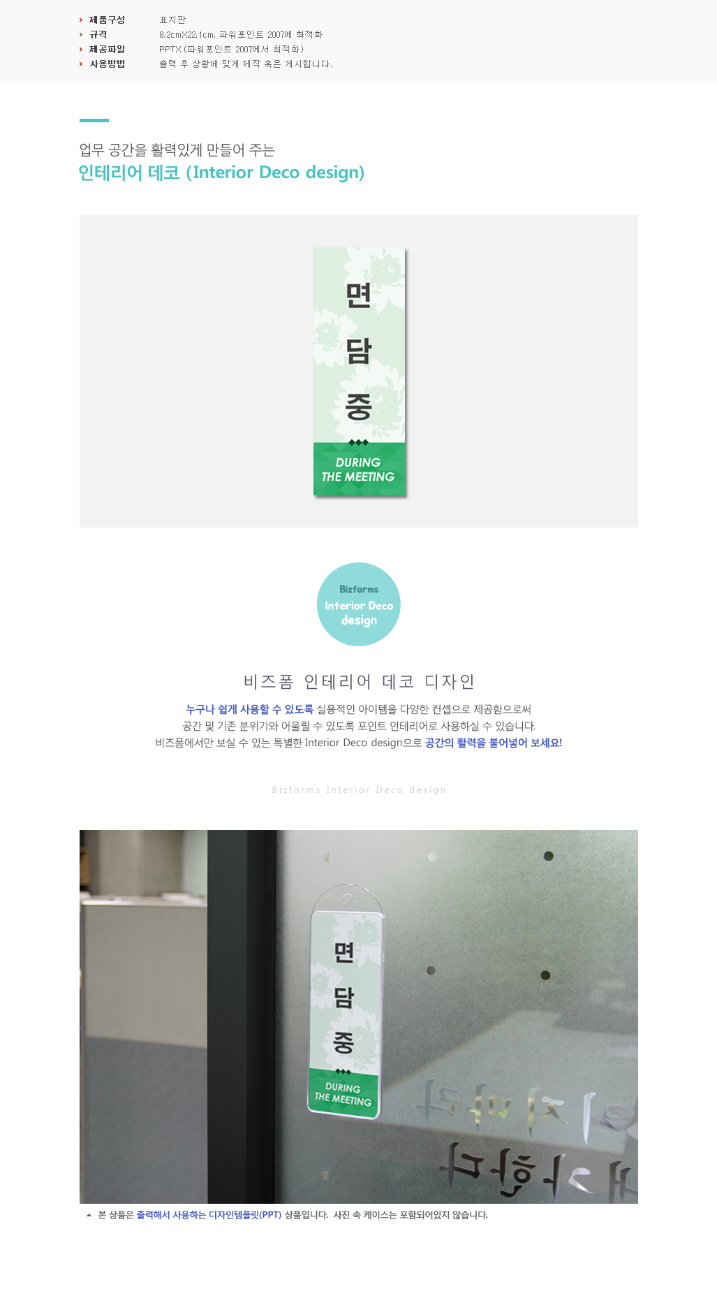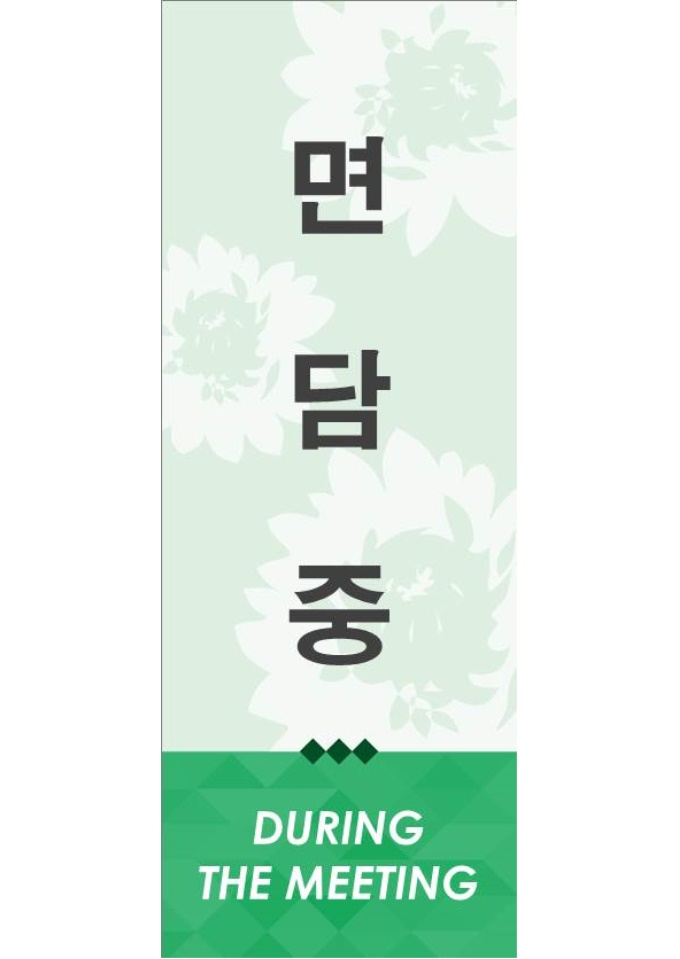 표지판_면담중(초록꽃무늬, 인테리어 디자인)입니다. 출력한 후 상황에 맞게 제작하여 사용합니다.