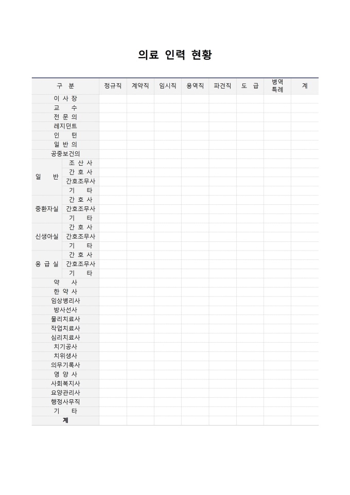 9,000원/월의료인력현황입니다. 병원 근무자 현황파악에 사용되고 있습니다.