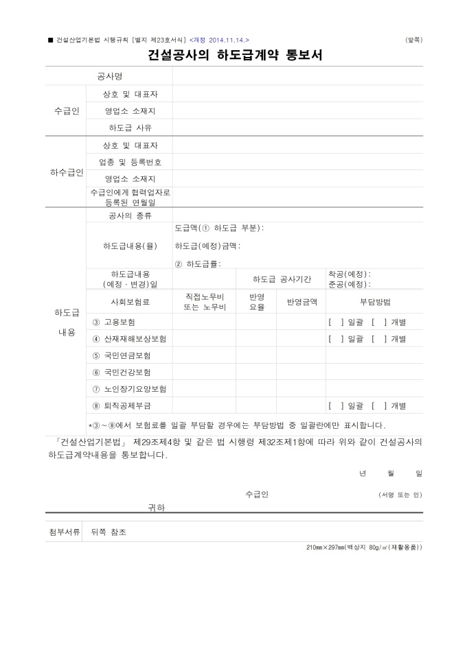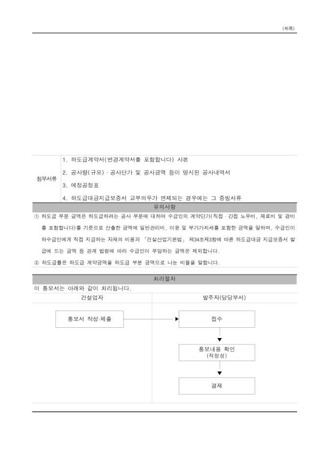 9,000원/월건설공사의 하도급 계약통보서 입니다.