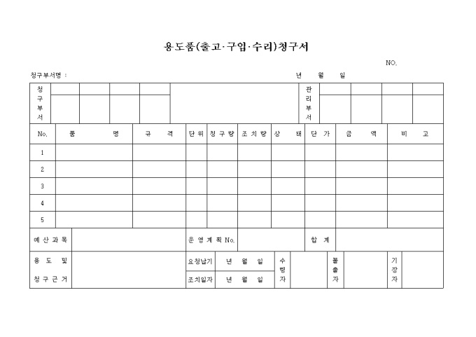 9,000원/월용도품의 내역과 단가, 금액을 기록하는 양식입니다.