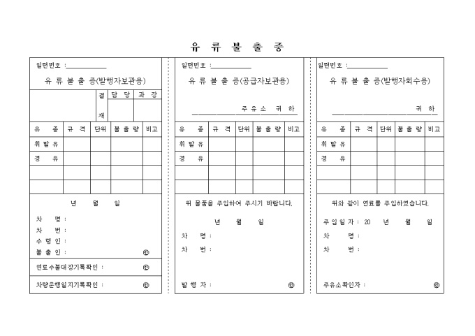 9,000원/월유종별 규격, 단위, 불출량을 기재하는 양식입니다.