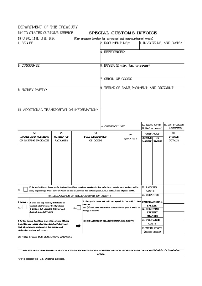 SPECLAL CUSTOMS INVOICE