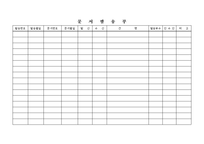 9,000원/월문서발송부1 양식입니다. 발송번호, 발송월일, 문서번호, 문서월일, 발신, 수신, 건명등의 항목으로 구성된 양식입니다.