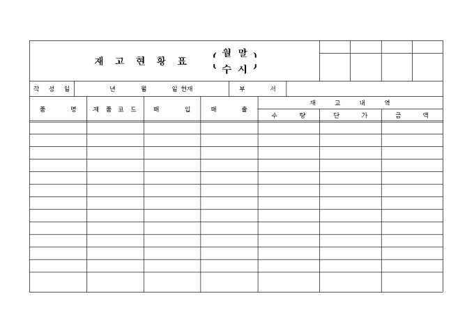 9,000원/월매입, 매출, 재고내역을 기록하는 재고현황표입니다.