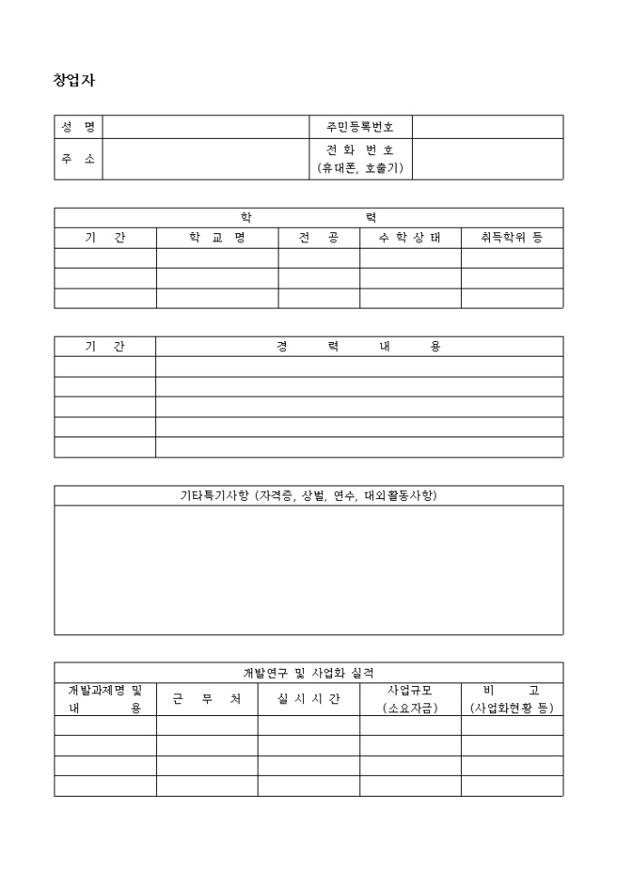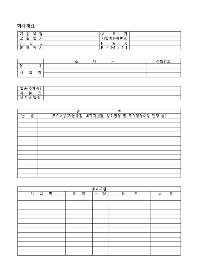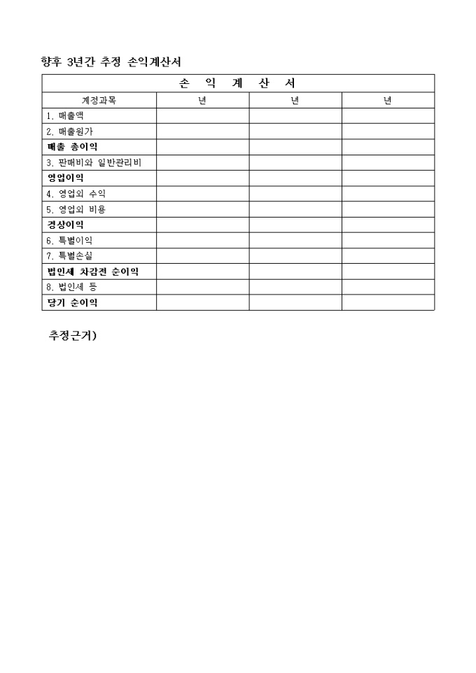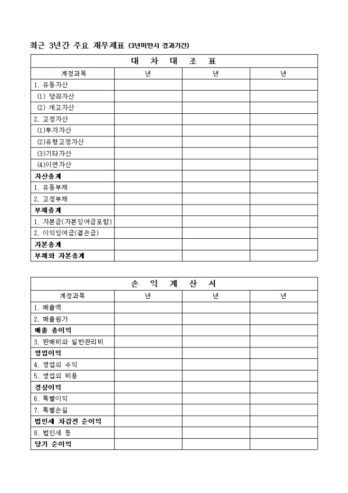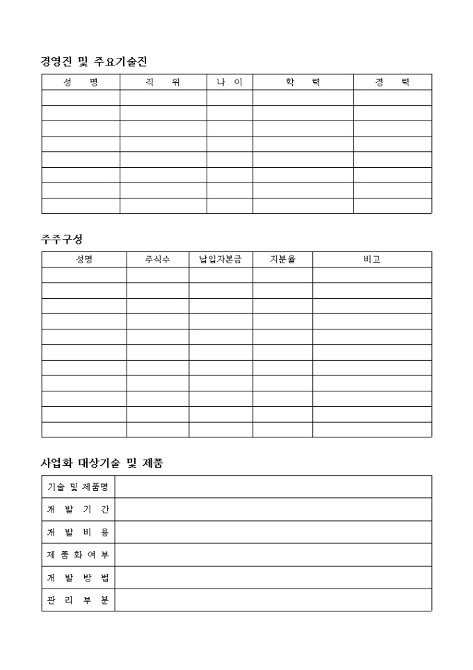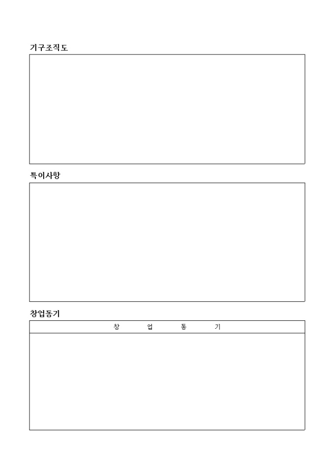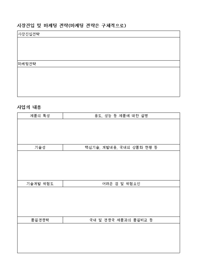 9,000원/월사업계획서 기본 서식입니다. -구성- 회사개요 기구조직도 특이사항 창업동기 창업자 경영진 및 주요기술진 주주구성 사업화 대상기술 및 제품 시장진입 및 마케팅전략 (마케팅 전략은 구체적으로) 사업의 내용 시장조사 및 분석 (구체적으로) 최근 3년간 주요 재무제표 (3년미만시 경과기간) 향후 3년간 추정 손익계산서