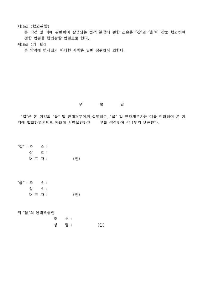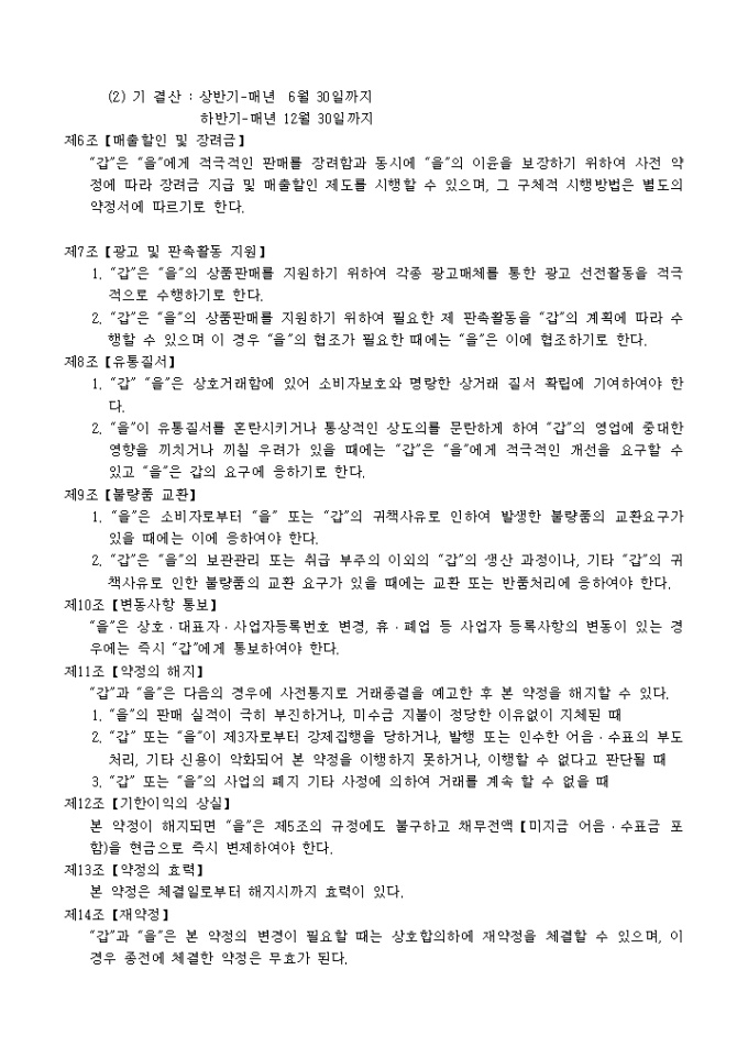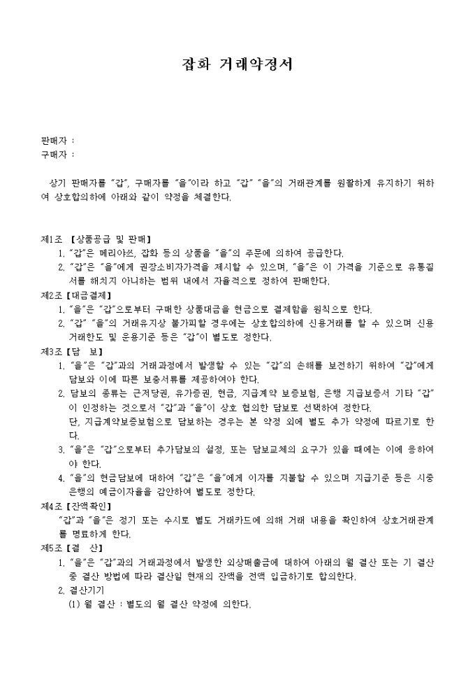9,000원/월갑과 을이 잡화거래시 필요한 약정 내용을 기재한 잡화거래 약정서 양식입니다.