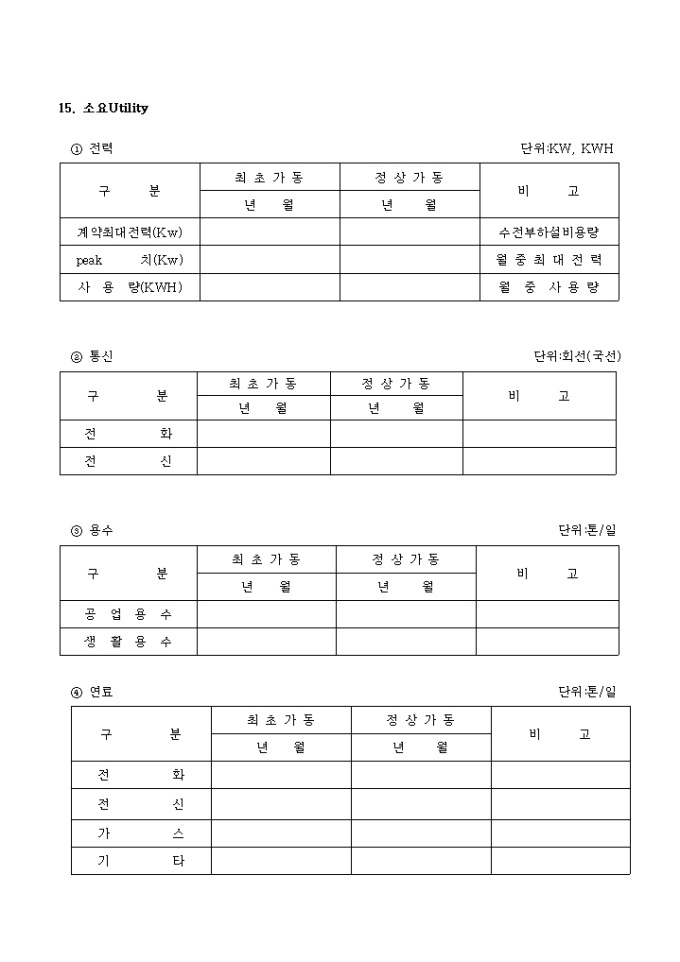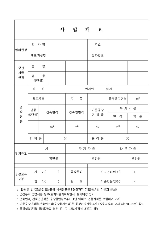 9,000원/월공단 입주관련 사업계획서(시·군·구,산업단지공단제출용) 양식 예제입니다. 공업배치 및 공장설립에 관한 법률 제38조 제1항 내지 3항 및 제38조의 1 제1항의 규정에 따라 위와 같이 산업단지 입주계약(변경계약)을 신청합니다. 년 월 일 신청인 (인) 한국산업단지공단 이 사 장 귀하