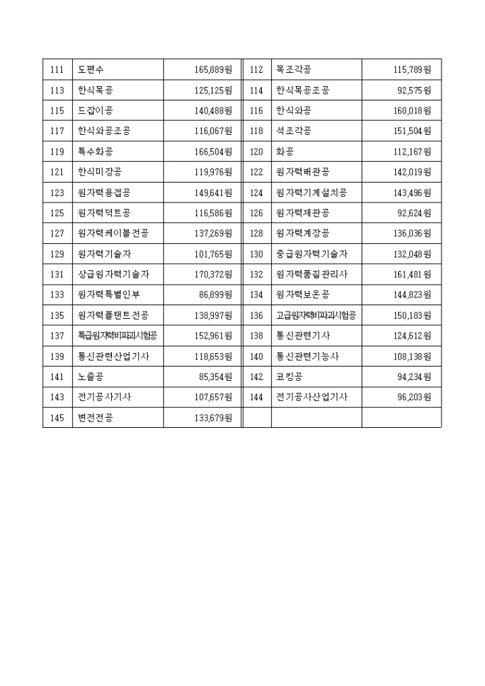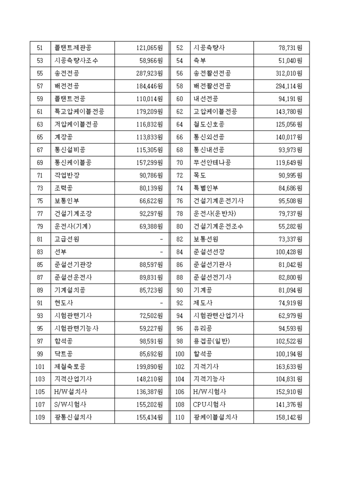 9,000원/월2009년 1월 1일부터 적용된 공사부문 노임단가표입니다.
