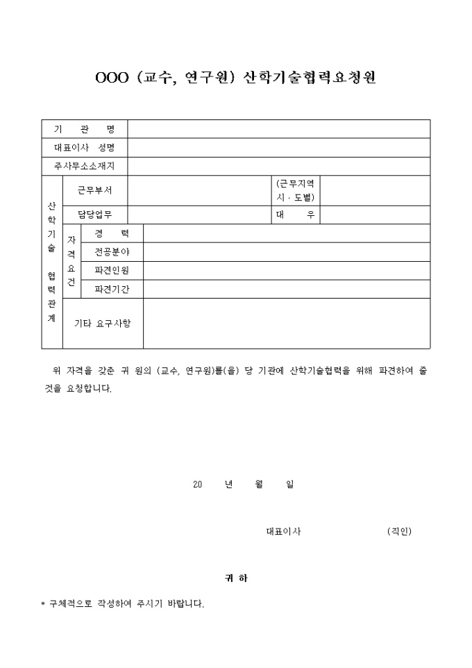 9,000원/월산학기술 협력관계를 요청할 때 사용하는 양식입니다.