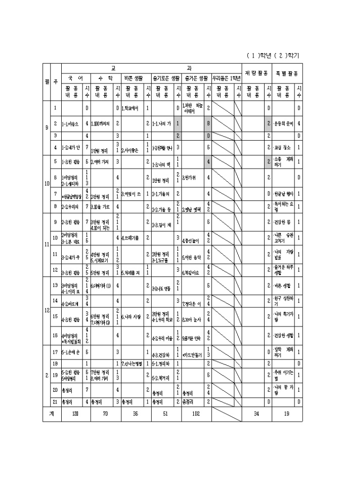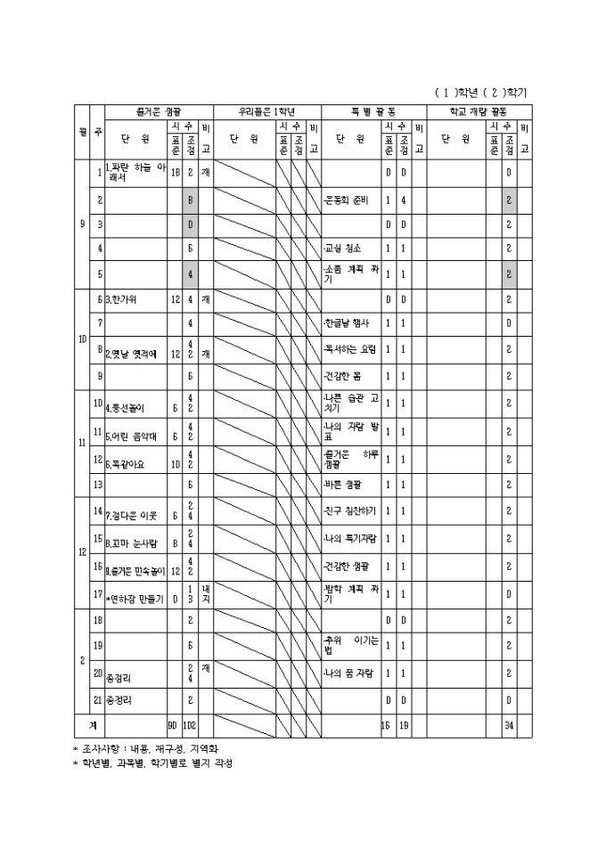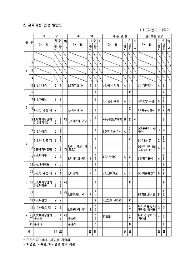 9,000원/월2000 교육과정 진도표입니다.학교 교육과정 편성 운영에 관한 설명이 나와 있습니다.
