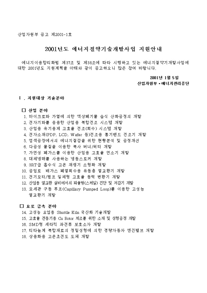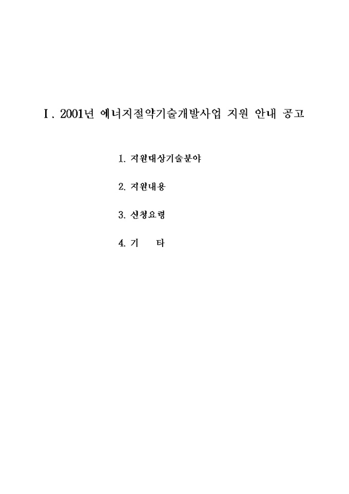 9,000원/월에너지절약기술개발에 관한 사업계획서 양식입니다. 자세한 내용은 다음의 목차를 참고하세요. -목차- Ⅰ. 2001년 에너지절약기술개발사업 지원 안내 공고 Ⅱ. 2001년 에너지자원기술개발 실행계획 Ⅲ. 2001년 에너지절약기술개발 현황분석(RFP) Ⅳ. 에너지자원기술개발사업 개요 Ⅴ. 세부사업비 산정기준 Ⅵ. 사업계획(신청)서 양식 Ⅶ. 관련 규정